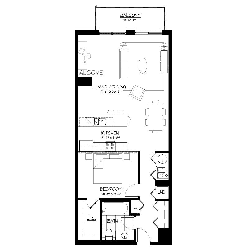| 1 bed / 1 bath | $2,000 - $2,100 | 750 - 800 sq. ft. | Floor plan |