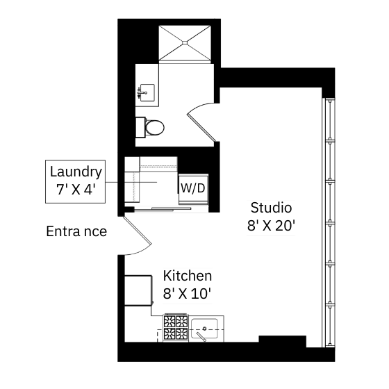 | Studio / 1 bath | $1,670 | 426 sq. ft. | Floor plan |