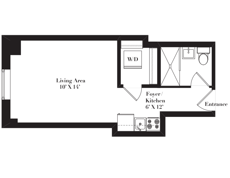 | Studio / 1 bath | $1,177 - $1,260 | 300 sq. ft. | |
