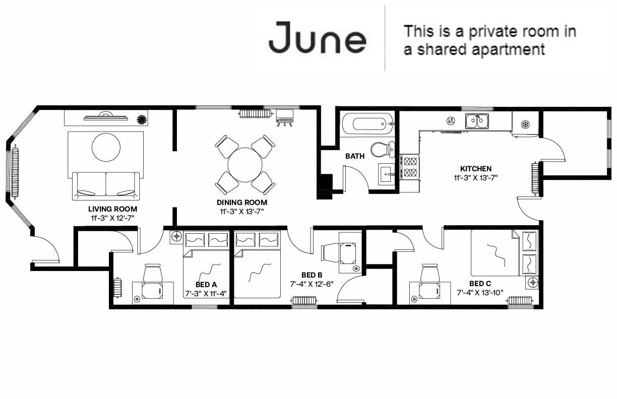 Suppose you are looking for a shared apartment in Logan Square, Chicago. In that case, you can choose this newly refurbished three bedrooms apartment on the one floor with a total size of 1087 sq. ft. with two other roommates, or you can rent this shared apartment on your own - if available. You can request to have your bedroom furnished or unfurnished.