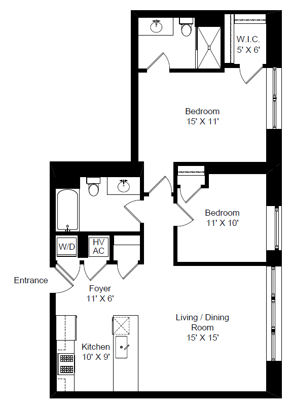| 2 bed / 2 bath | $2,955 | 893 sq. ft. | Floor plan |